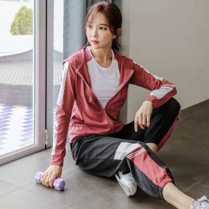 瑜伽服短袖外套三件套 運(yùn)動(dòng)套裝女新款健身房跑步寬松晨跑速干服