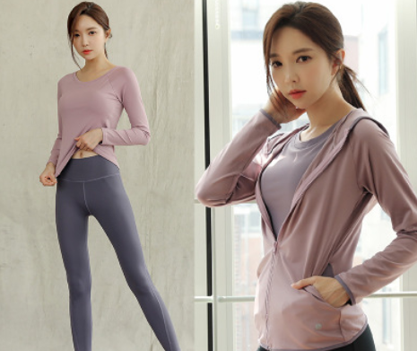 秋冬新款長袖運動套裝女速干彈力健身連帽外套帶胸墊瑜伽服三件套