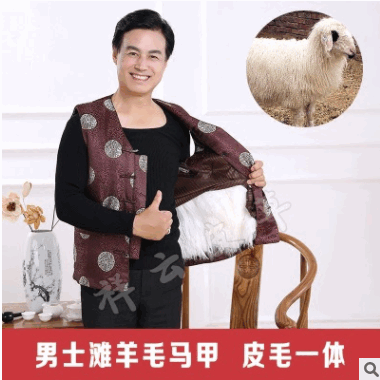 中年羊毛馬甲男 保暖灘羊毛馬甲 皮毛一體羊毛馬甲背心