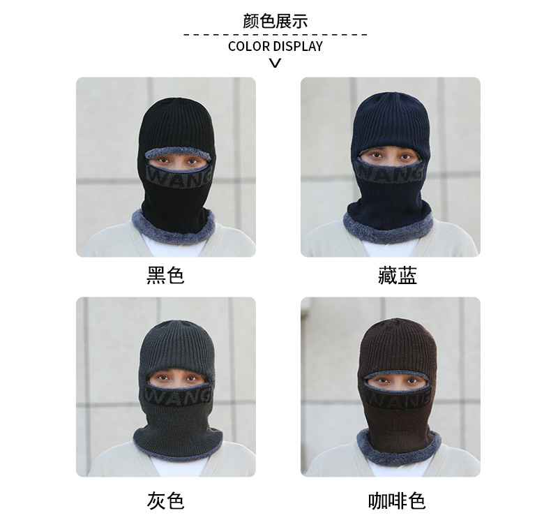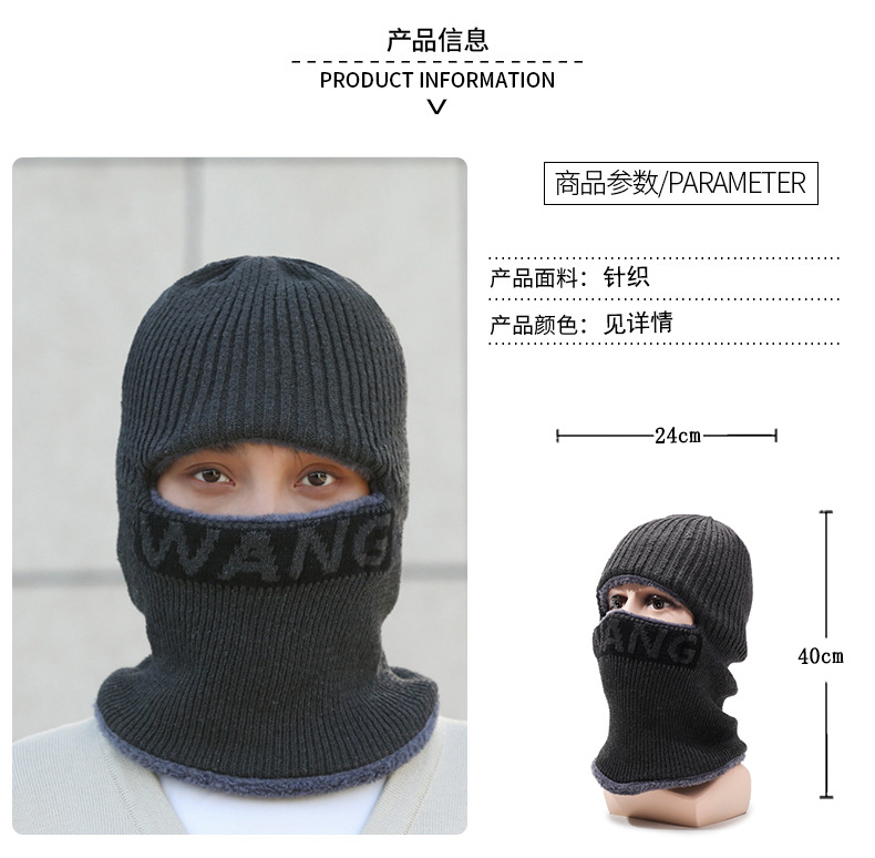 毛線帽冬季男士加絨保暖針織帽防寒騎行王字母連體帽跨境戶外帽子