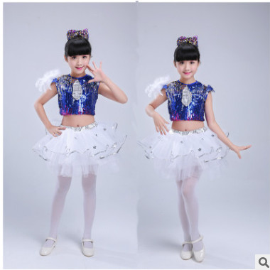 六一兒童亮片紗裙演出服女童蓬蓬裙少兒現代舞爵士舞蹈紗裙表演服