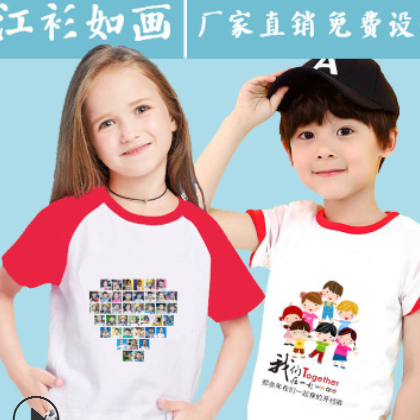 兒童幼兒園班服T恤定制做短袖純棉小學(xué)生廣告文化衫DIY印字LOGO圖