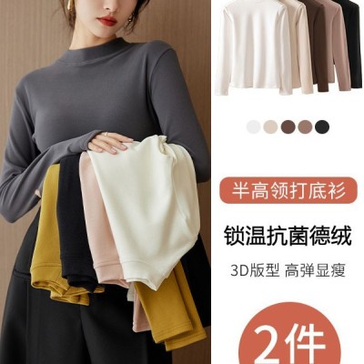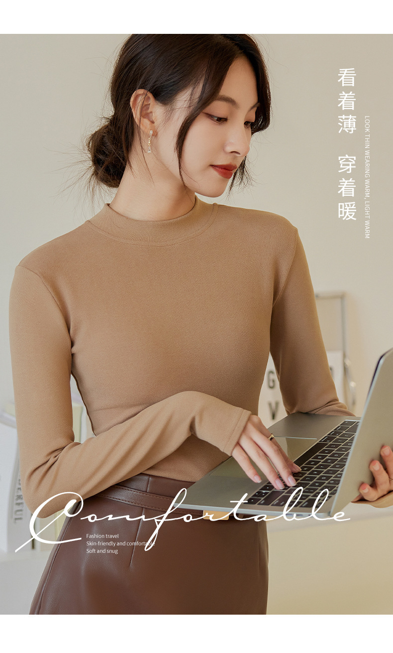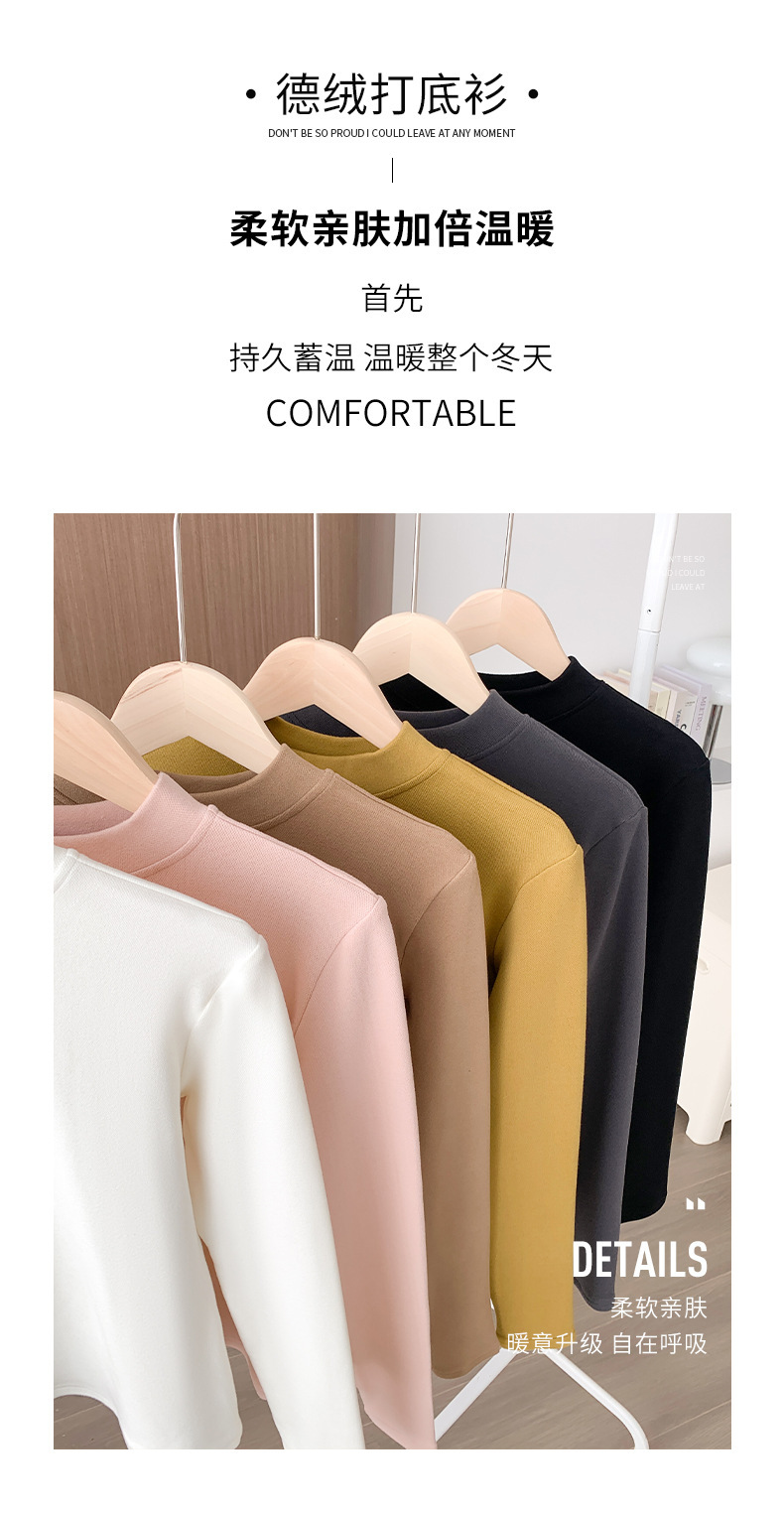 秋冬季德絨打底衫女半高領(lǐng)加厚保暖內(nèi)搭修身顯瘦磨毛長(zhǎng)袖上衣T恤
