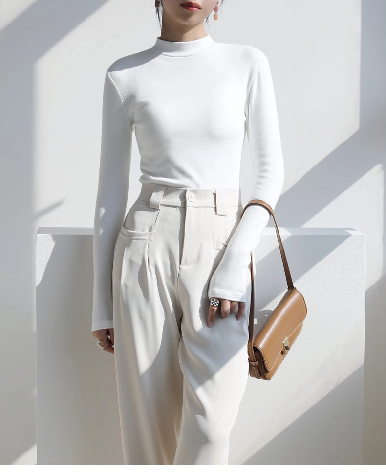 灰色半高領莫代爾打底衫女秋冬上衣內搭緊身顯瘦洋氣純色長袖T恤