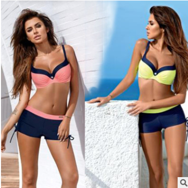 2018年新款分體兩件套比基尼平角褲泳衣純色泳裝現(xiàn)貨廠家直銷批發(fā)