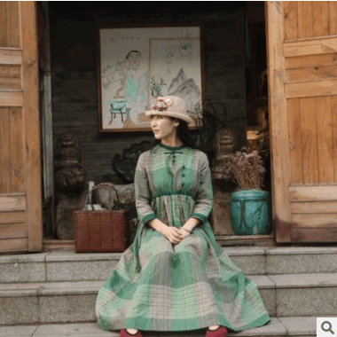2019春季新款女裝原創棉麻女裝春款文藝復古民族盤扣印花長裙長袍