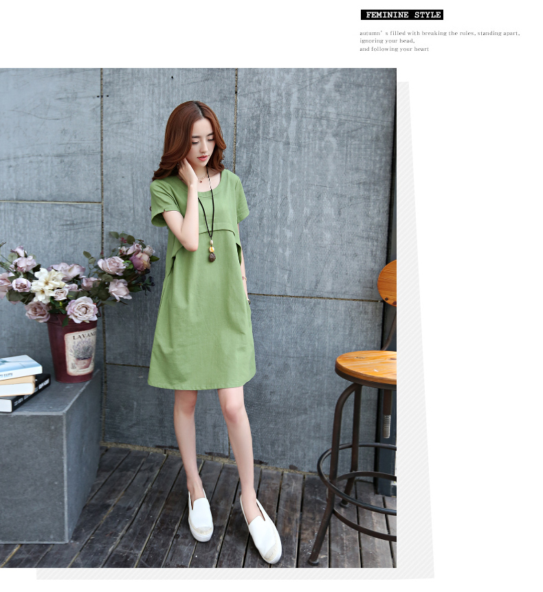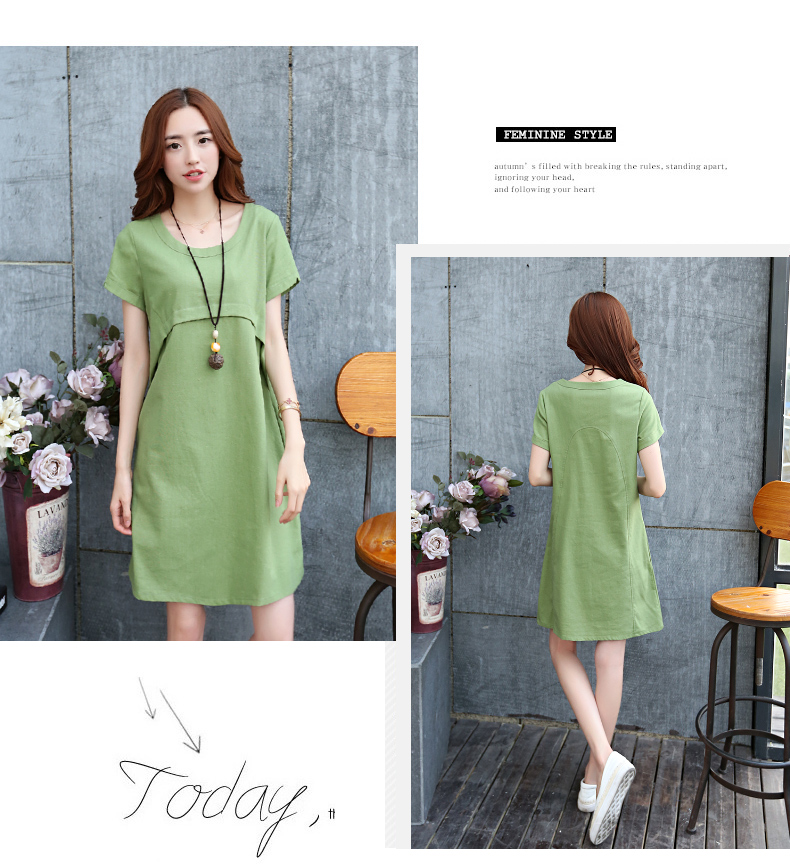 2020春夏裝連衣裙中長款韓版寬松大碼短袖上衣棉麻孕婦夏季連衣裙