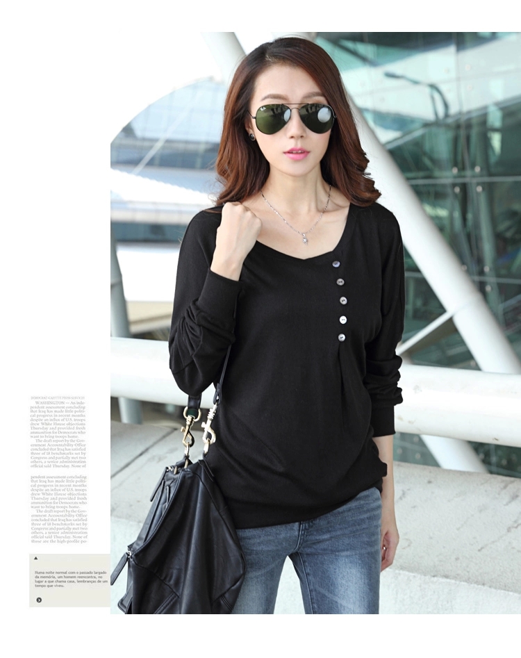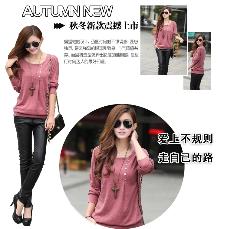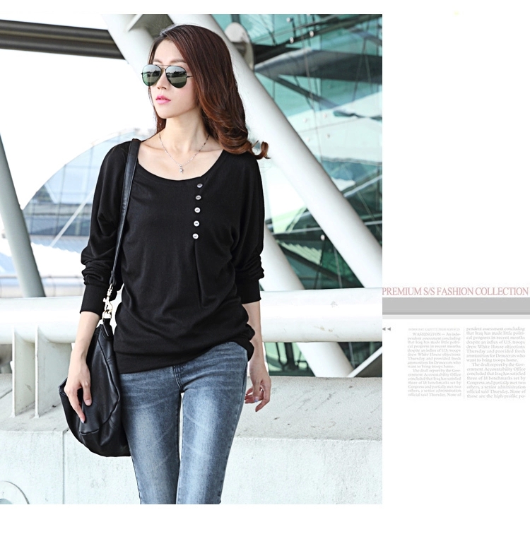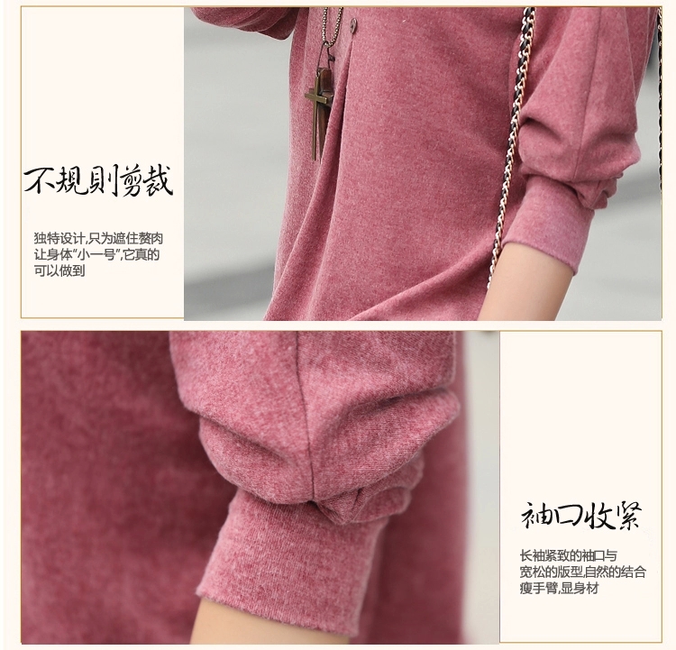 春裝新款女裝蝙蝠袖寬松長袖t恤女款潮大碼中長款長袖打底衫