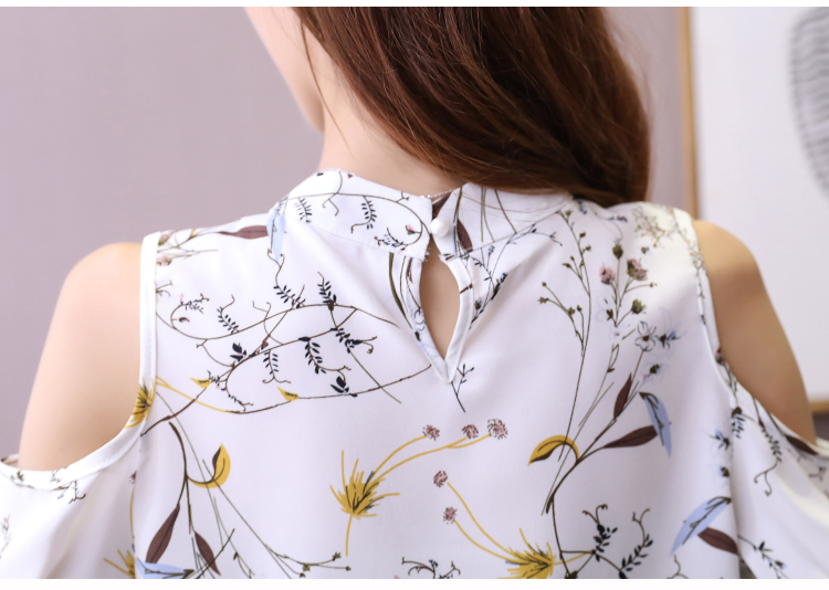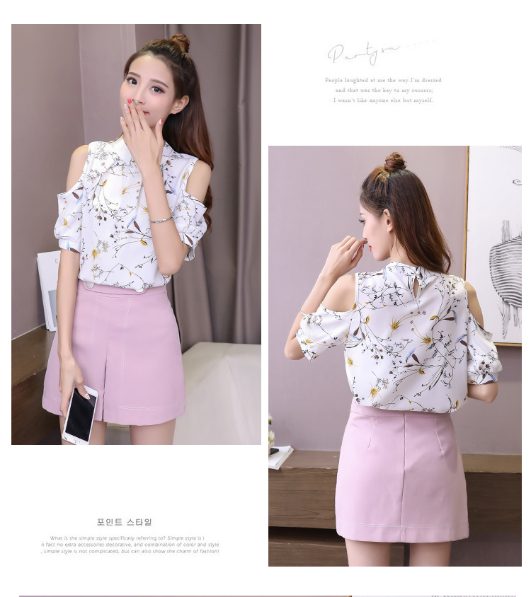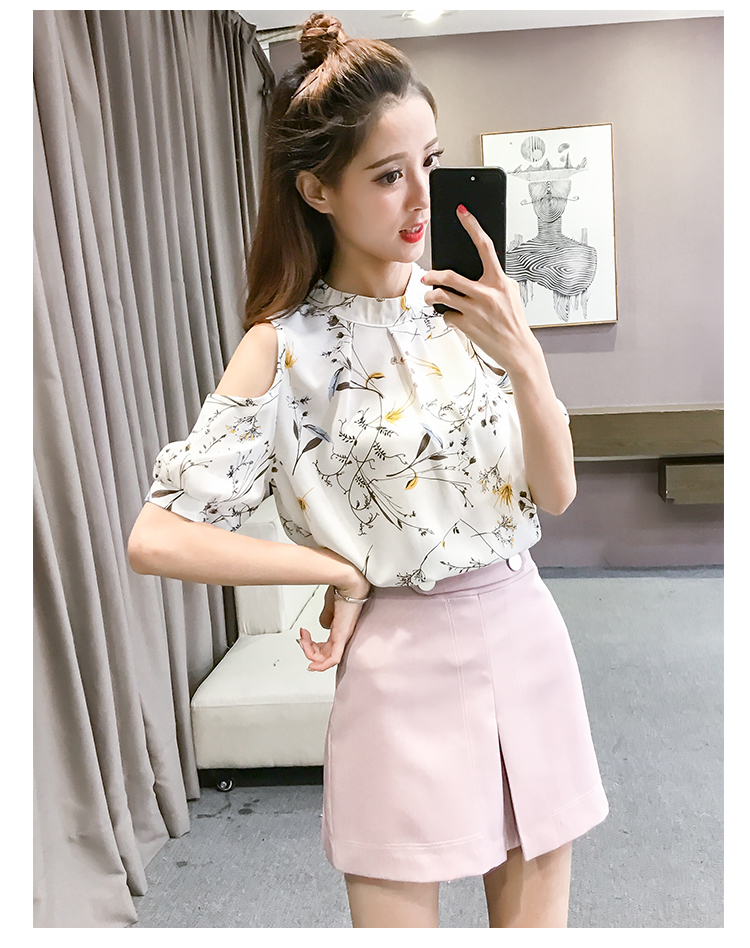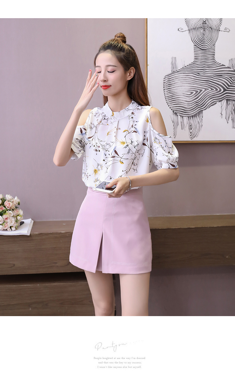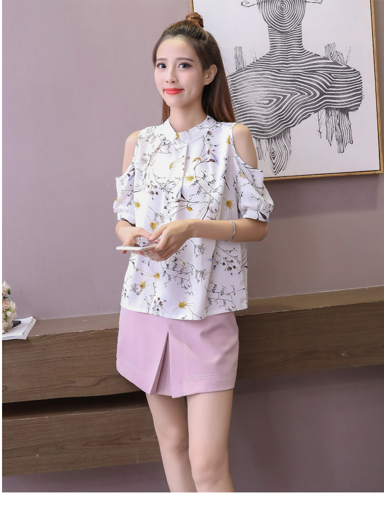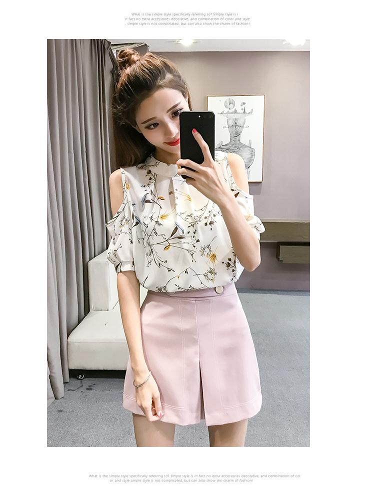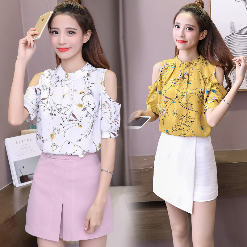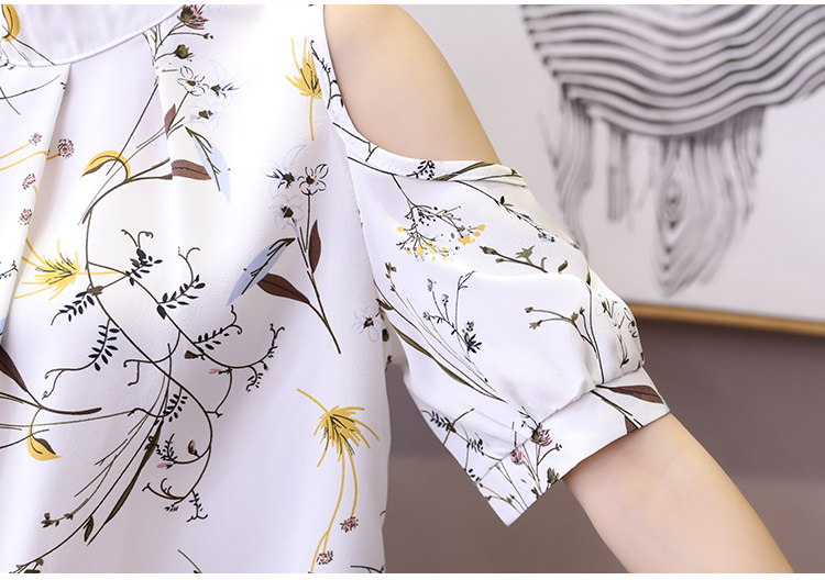 2020夏裝新款碎花雪紡衫短袖女露肩上衣顯瘦遮肚子打底衫