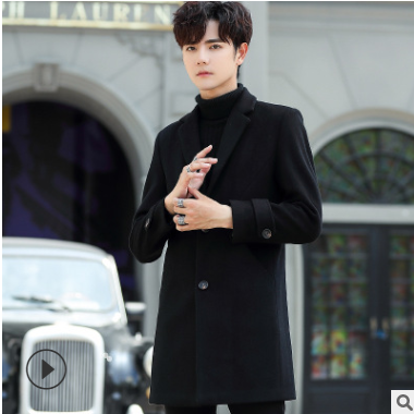 新款男式大衣韓版修身羊毛呢風衣青年冬季保暖外套廠家直銷男裝外