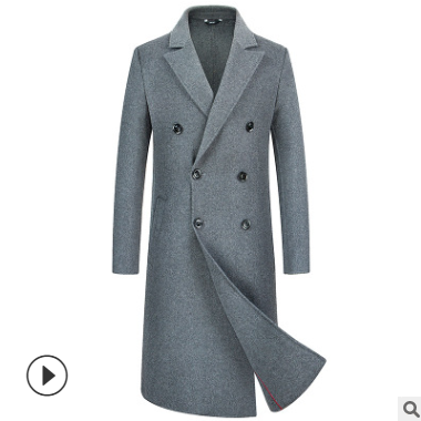 秋冬新款雙面尼大衣韓版男式長款過膝商務風衣雙排扣秋冬毛呢外套