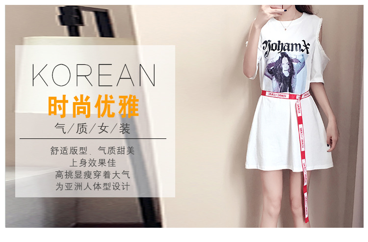 2018夏季新款加肥加大碼女裝胖mm露肩印花短袖chic小心機連衣裙