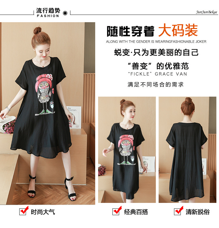 2018夏季新款加肥加大碼女裝胖mm寬松短袖中長款印花連衣裙夏批發(fā)