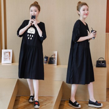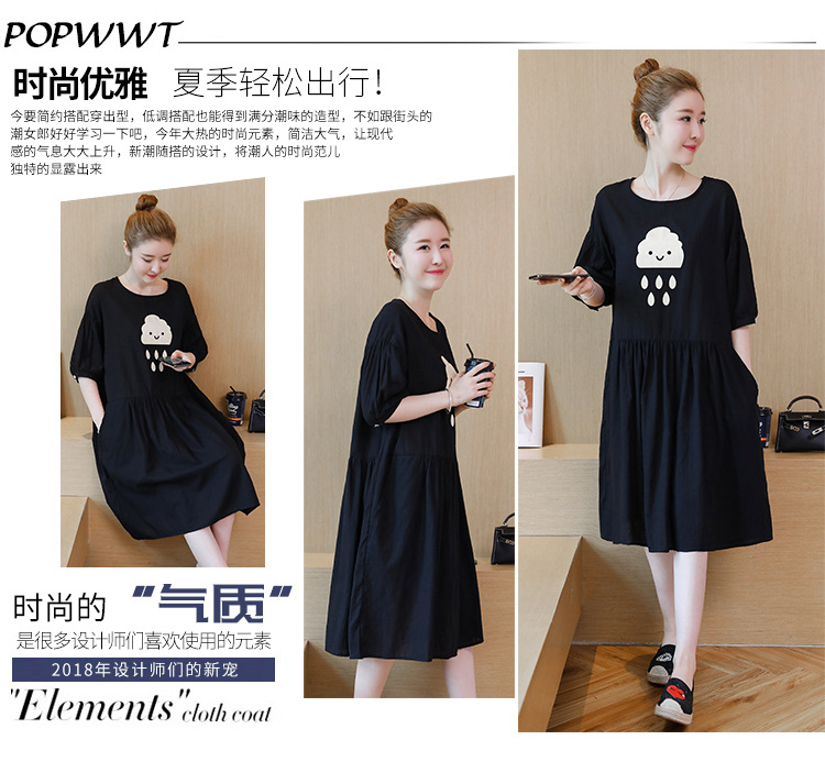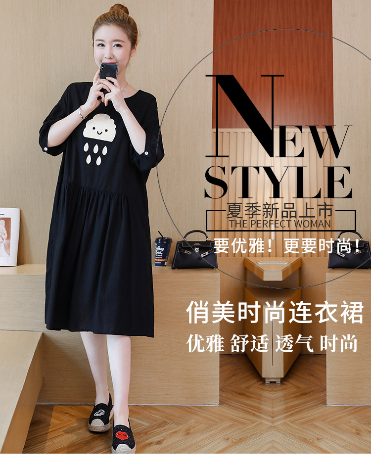 2018夏裝新款胖mm寬松顯瘦A字裙中長款大碼休閑舒適孕婦裝連衣裙