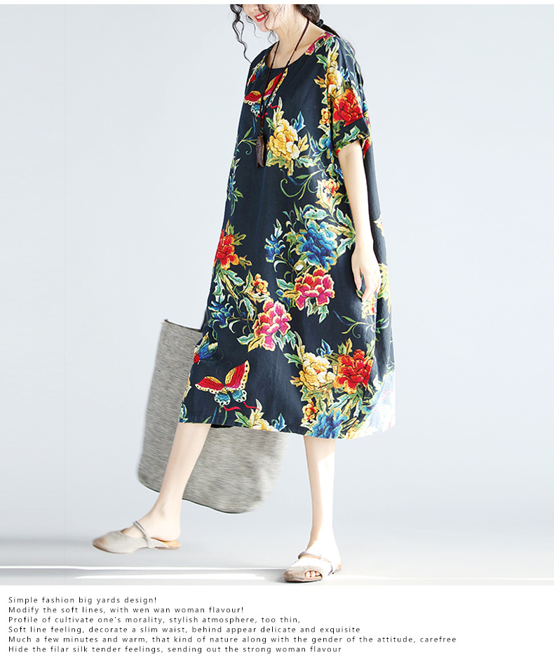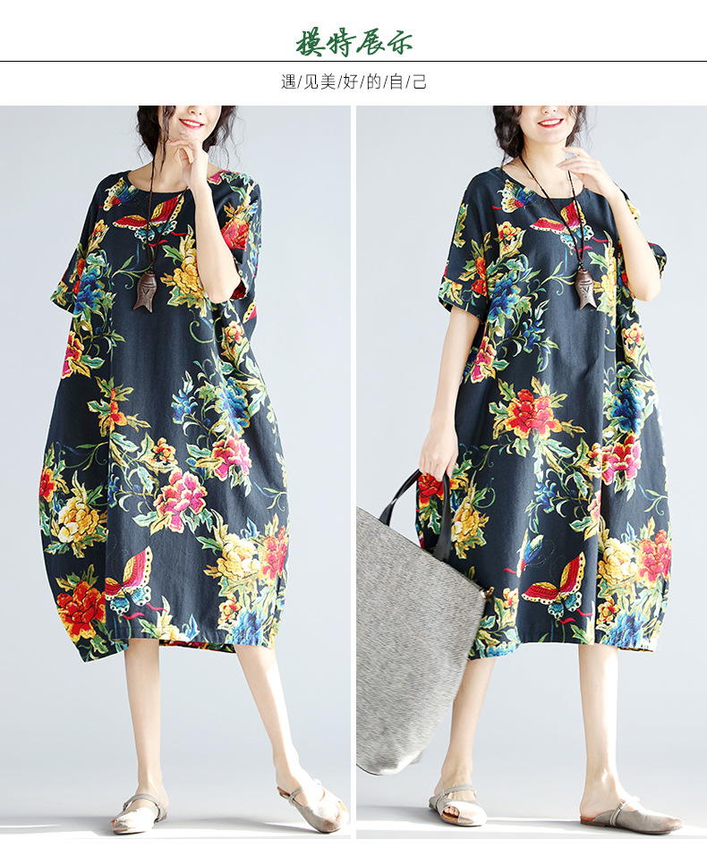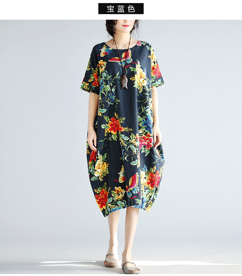2018夏季新款民族風外貿大碼女裝胖mm寬松顯瘦棉麻中長款連衣裙