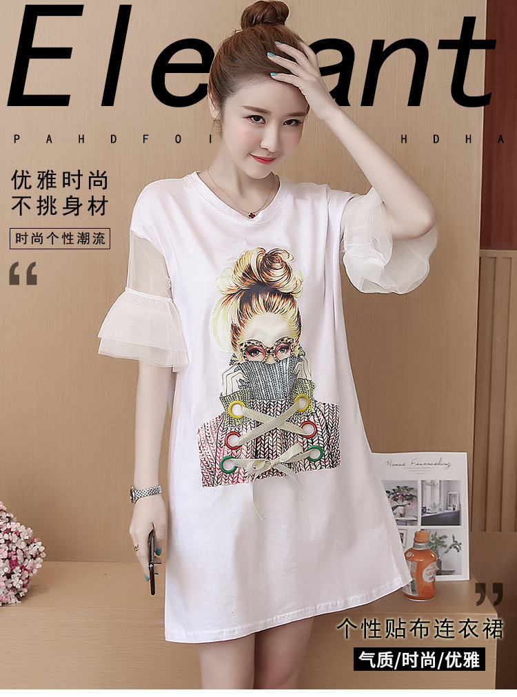 2018夏季新款韓版胖mm大碼女裝200斤網紗短袖印花貼布連衣裙潮