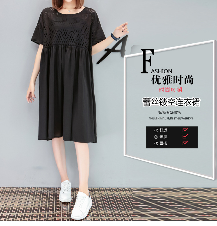 2018外貿夏季新款胖mm時尚顯瘦大碼女裝拼接鏤空連衣裙寬松孕婦裝