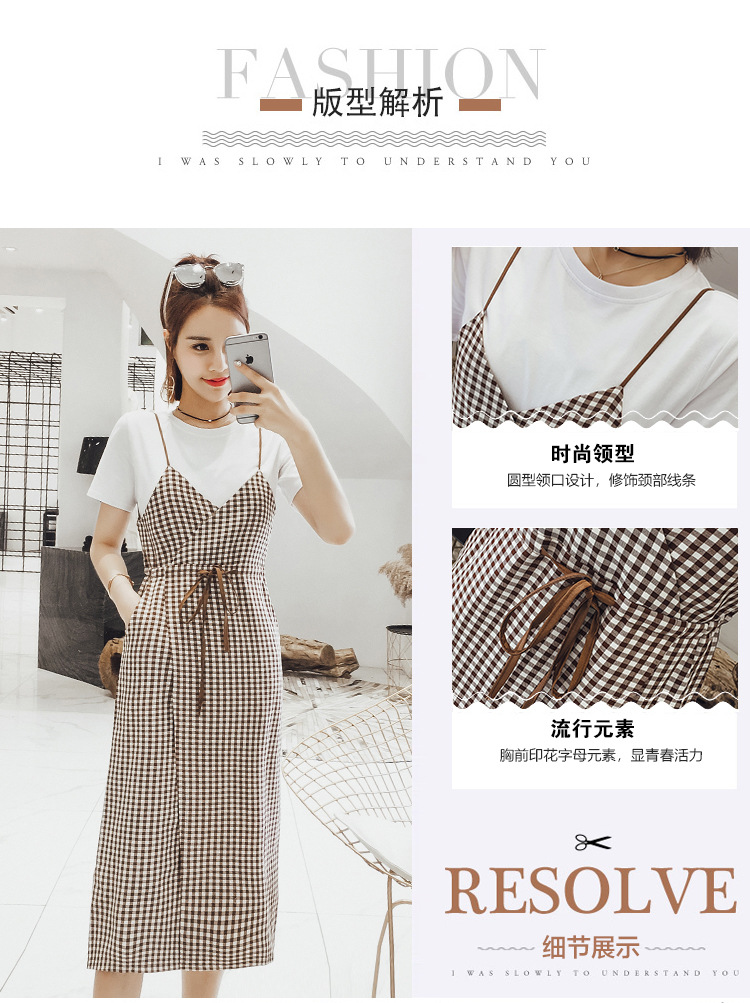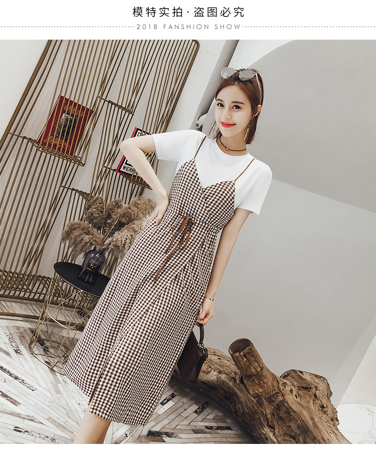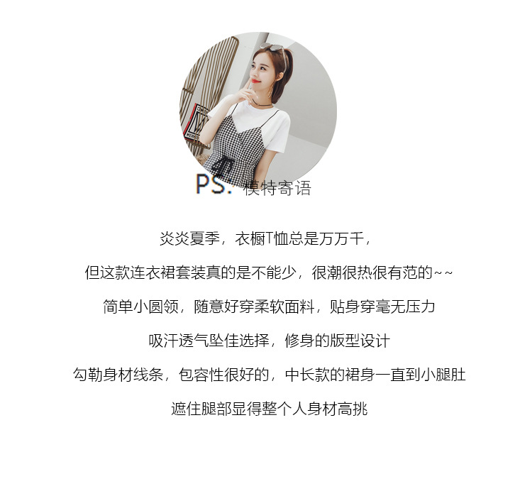 2018夏裝新款加肥加大碼女裝胖mm吊帶格子裙氣質通勤兩件套連衣裙
