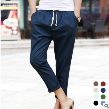 夏季男裝亞麻褲夏日棉麻休閑褲 9分褲子男式九分褲情侶小腳哈倫褲