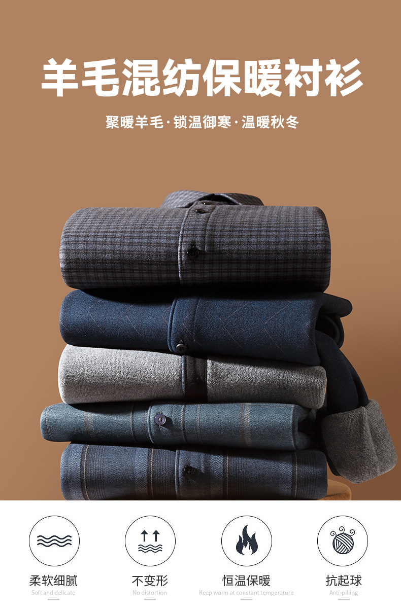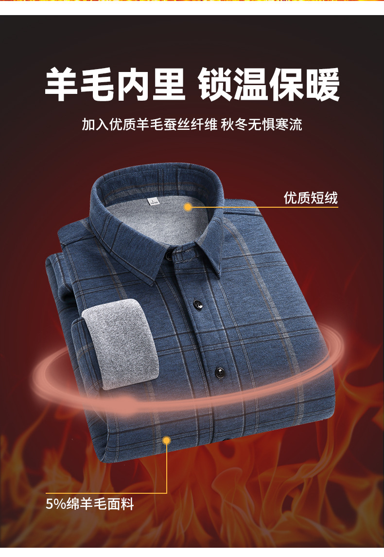 羊毛襯衫男長袖加絨加厚中老年爸爸裝秋冬季男裝休閑男士保暖襯衣