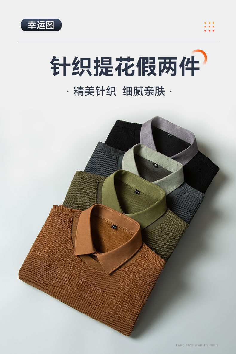 高檔提花工藝秋季針織衫男款休閑輕奢時(shí)尚毛衣男裝長(zhǎng)袖假兩件襯衫