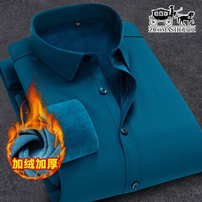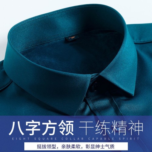 男士保暖襯衫秋冬加絨加厚長袖商務(wù)休閑韓版不起球抗皺純色襯衣男