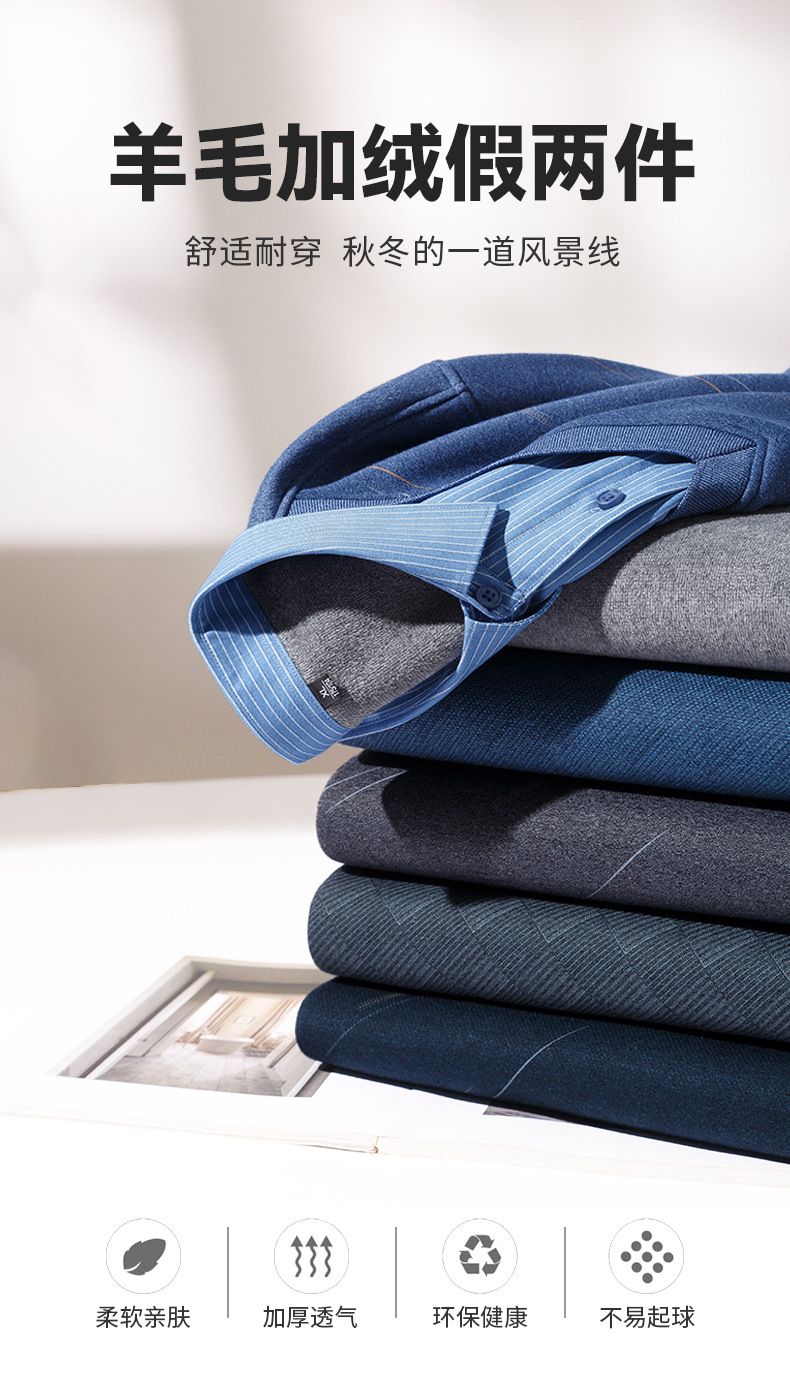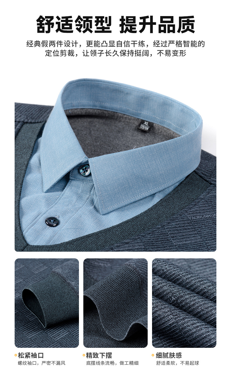 假兩件毛衣男長袖2024冬季新款打底衫加絨加厚男裝襯衫男士針織衫