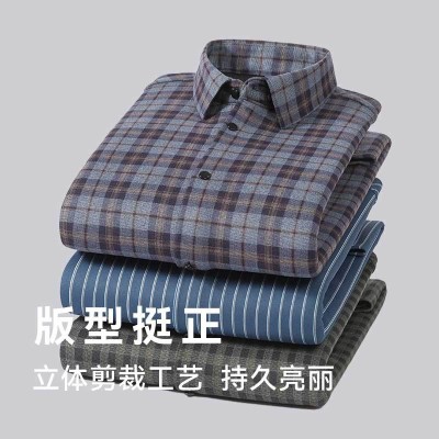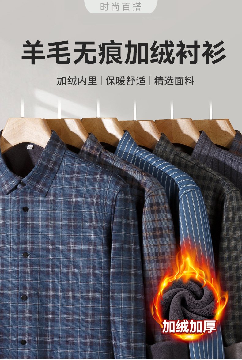 加絨襯衫男長袖冬季加厚男裝中老年休閑羊毛男士磨毛發(fā)熱保暖襯衣