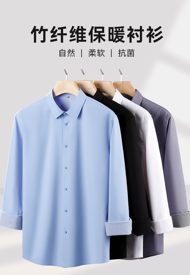 竹纖維保暖襯衣男長袖加厚男裝商務正裝抗皺免燙男士加絨白襯衫冬