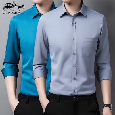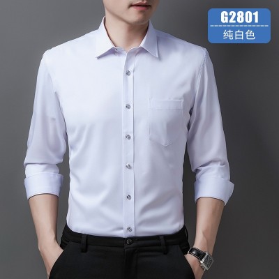 男士襯衣長袖襯衫男秋冬商務男裝彈力抗皺免燙職業(yè)裝工裝刺繡LOGO