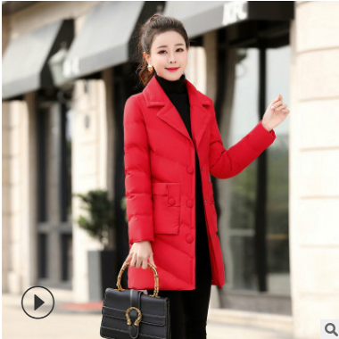 微供微商2019冬季新款羽絨棉服女中長(zhǎng)款時(shí)尚修身顯瘦西裝領(lǐng)外套