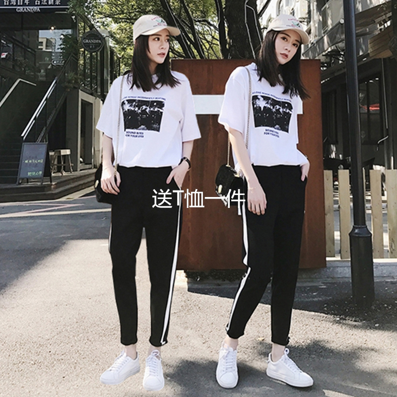 春夏韓版百搭休閑褲女套裝寬松運動褲原宿學生長褲衛褲哈倫褲代發