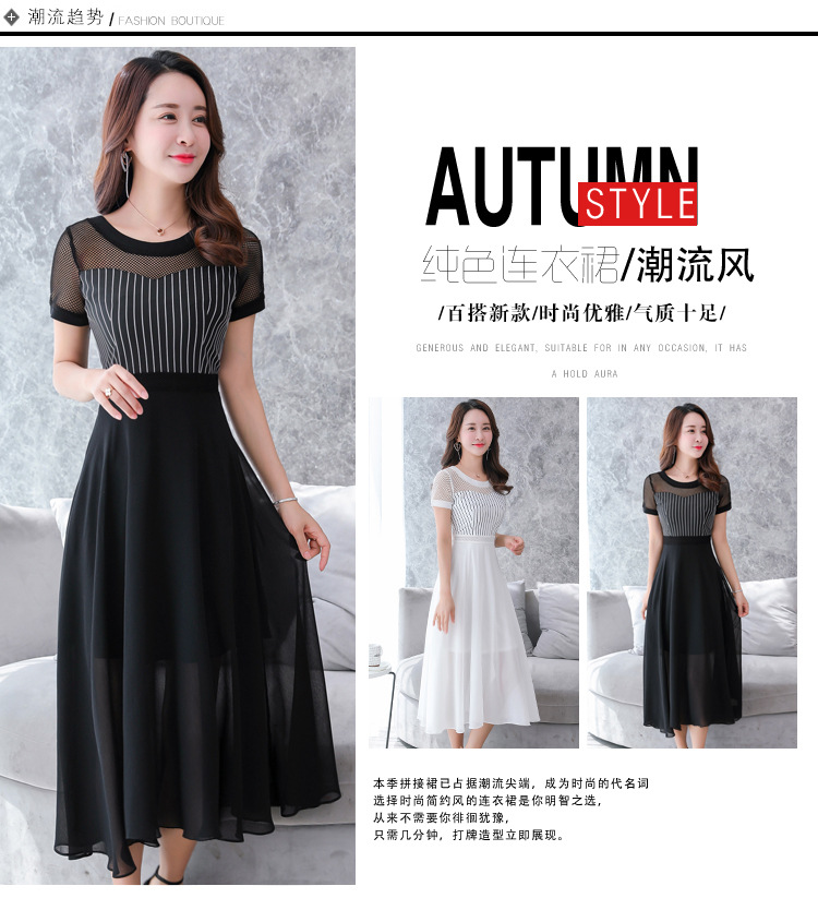 實拍條紋連衣裙長裙2018新款韓版修身顯瘦氣質雪紡裙夏