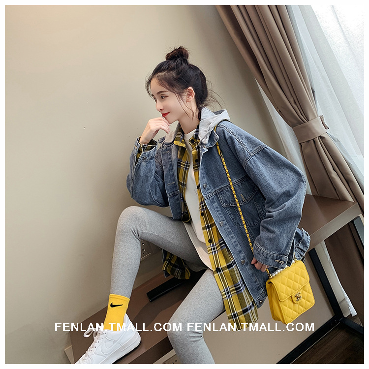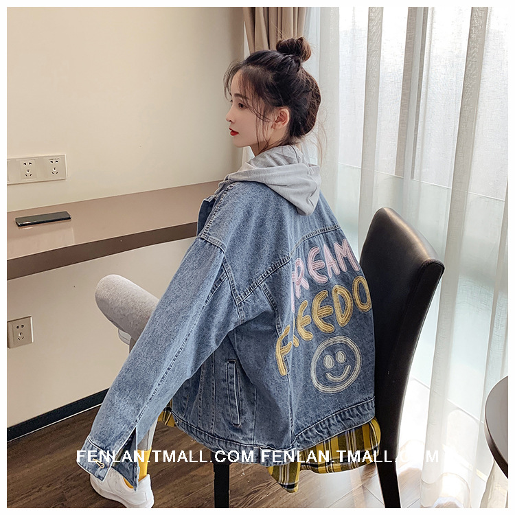 連帽牛仔外套女 韓版寬松2021年春秋新款字母刺繡學生休閑上衣