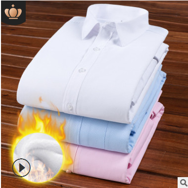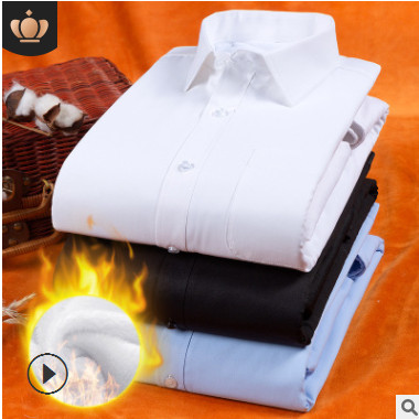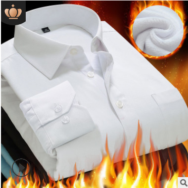 大碼男士保暖白襯衫修身免燙商務職業正裝棉純色長袖加絨加厚襯衣