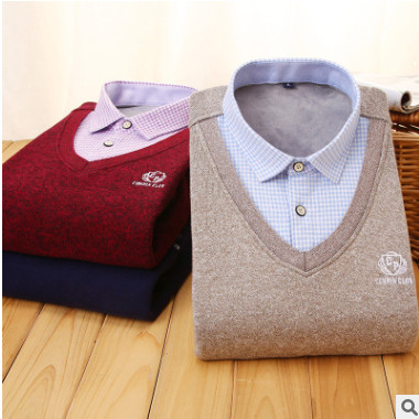 2018新款秋冬季保暖白襯衫修身男士加絨加厚假2件商務職業(yè)正裝長