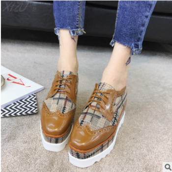 2018春季新款時尚女鞋 一件代發系漆皮格子布休閑女士單鞋 百搭淑