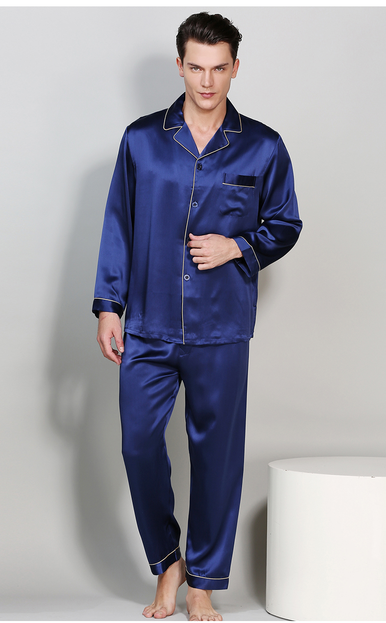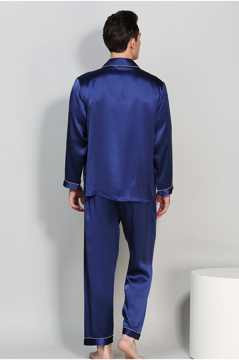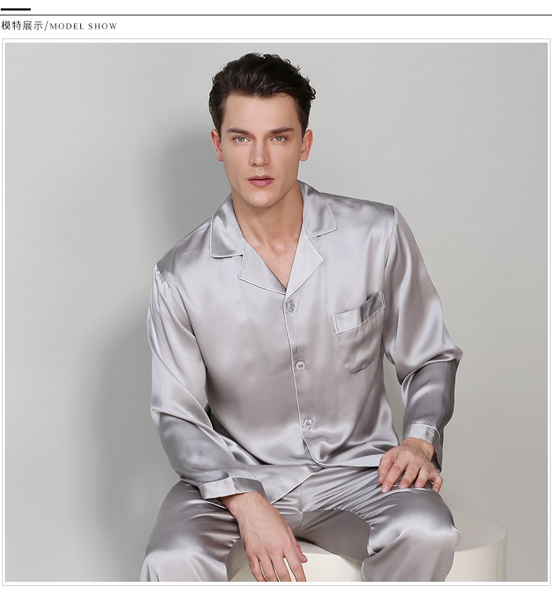 男士長袖19姆米重磅真絲睡衣套裝100%桑蠶絲綢春秋家居服T9002-ZB