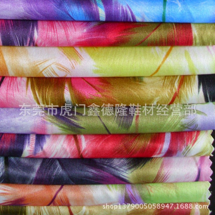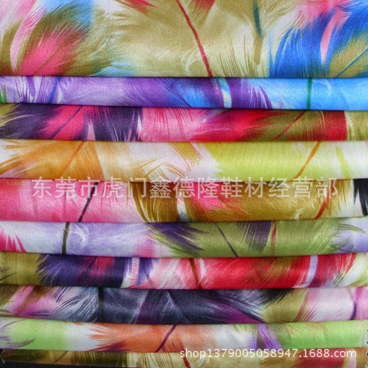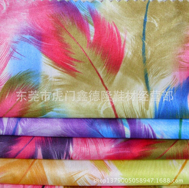 產品特征材質: 化纖幅寬:145CM用途:服裝,手袋.箱包,鞋材,家具等產品優勢色水齊全,現貨充足,手感舒適,印羽毛沙丁貢緞。訂 貨期:7-10天起訂量:(1)現貨,無需任何起訂量 (2)新色水起訂量500碼,接受5%正負差。