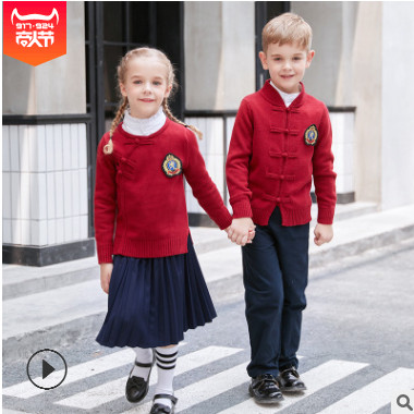 中國風幼兒園園服演出服小學生校服毛衣三件套男女童唐裝民國服
