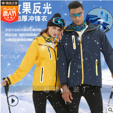 塔絲隆反光加厚沖鋒衣定制戶外騎行服登山服秋冬工作服外套印字繡