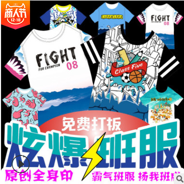 DIY個性班服定制全身印大圖圓領短袖滿幅文化衫活動t恤定做廣告衫