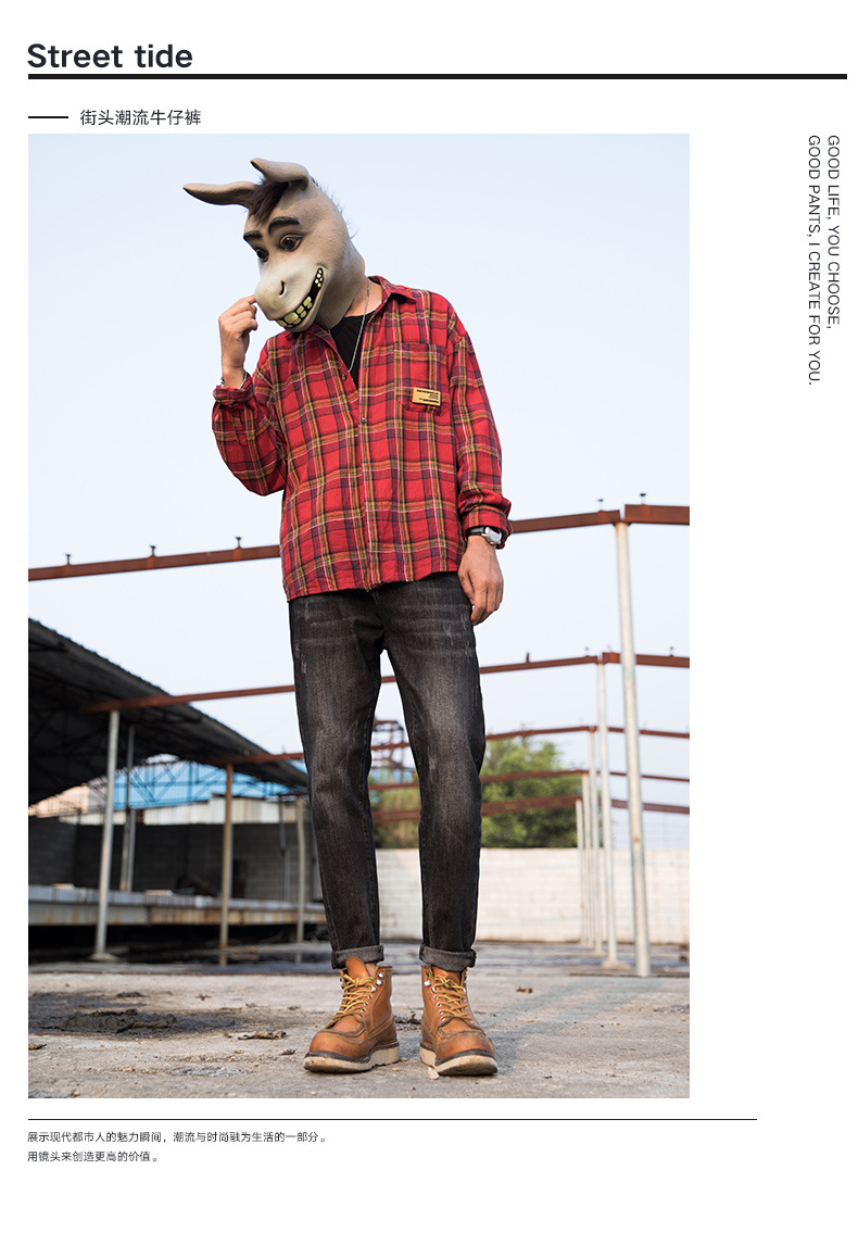 港風牛仔褲男士潮牌寬松墜感直筒闊腿褲韓版百搭春秋款老爹褲代發