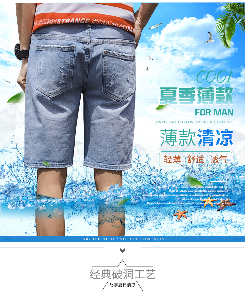 牛仔短褲男潮流乞丐褲帥氣夏季中褲男士破洞五分褲