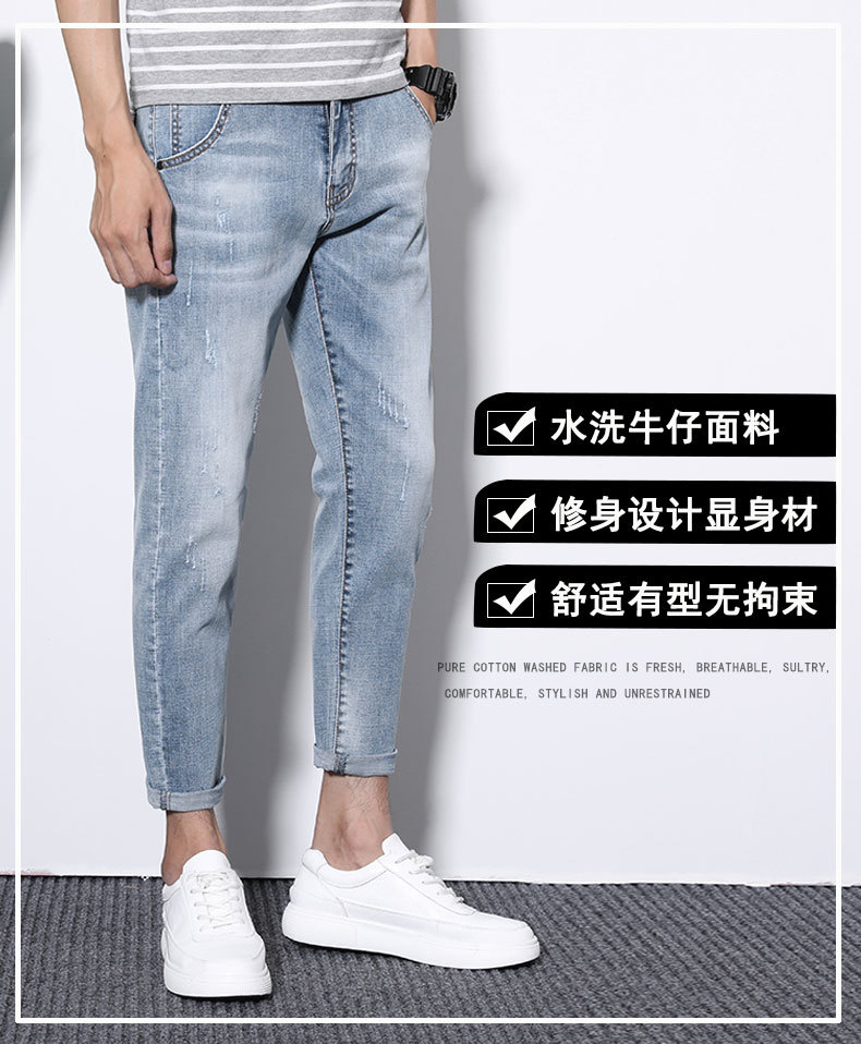 2020春夏牛仔褲男潮牌九分褲修身休閑男褲小腳韓版褲子男潮流百搭