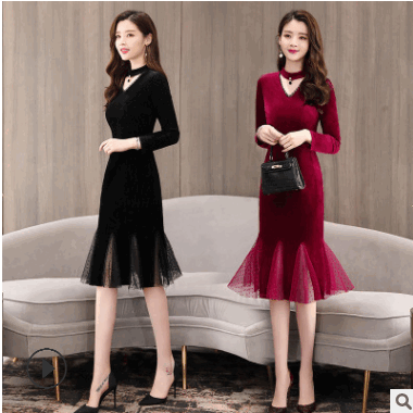 新款韓版蕾絲連衣裙 修身時(shí)尚職場(chǎng)優(yōu)雅高腰收腰顯瘦中長(zhǎng)款魚尾裙