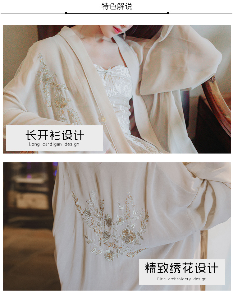實拍《子午蓮2019》沙裸色仙系金絲刺繡防曬開衫上衣女裝