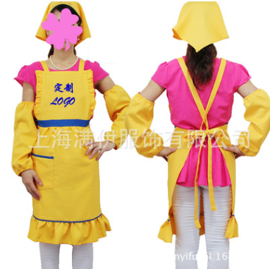 圍裙定制時尚韓版荷葉邊圍衣套裝服務員工作服定做刺繡印字logo