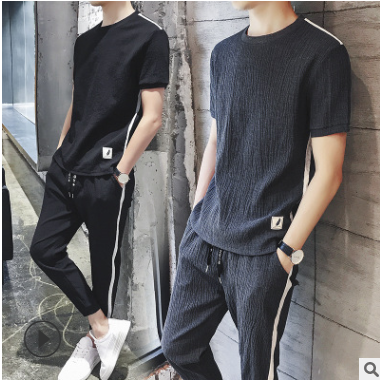男士夏季休閑套裝 青少年學生夏季個性潮流薄款短袖T恤短褲套裝潮
