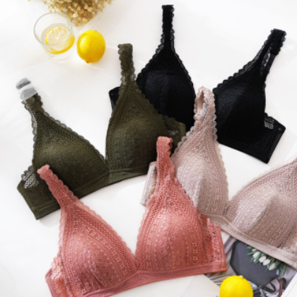 法式無鋼圈蕾絲文胸 新品性感深V聚攏舒適薄胸罩三角杯內衣女代發